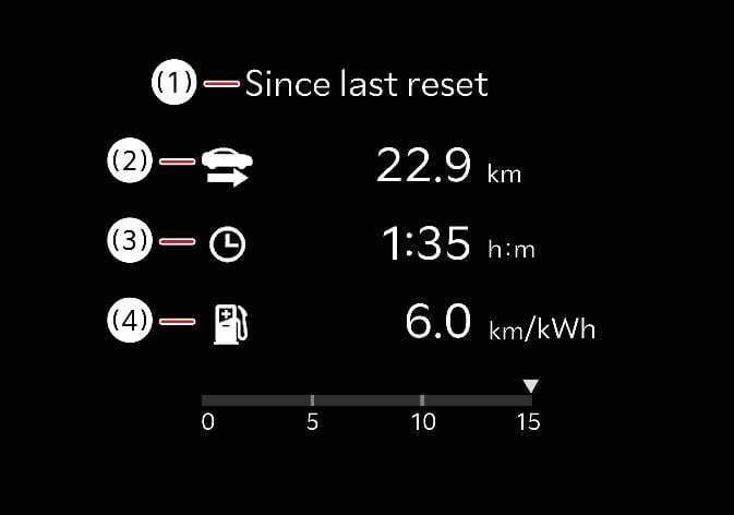 Es werden die kumulierten Tageskilometer, die Gesamtfahrzeit und der durchschnittliche Energieverbrauch angezeigt.