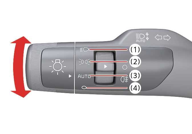 Der Lichtschalter verfügt über eine Einstellung für Scheinwerfer und Positionsleuchten.