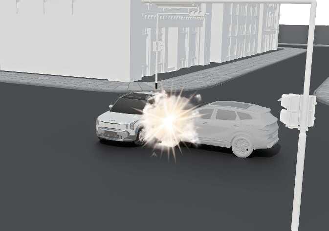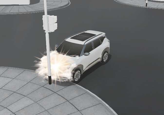 Airbags werden möglicherweise nicht ausgelöst, wenn das Fahrzeug mit einem Objekt wie einem Strommast oder einem Baum kollidiert. Der Aufprallpunkt konzentriert sich nämlich in einem Bereich, und die Sensoren erhalten nicht die volle Aufprallkraft. |