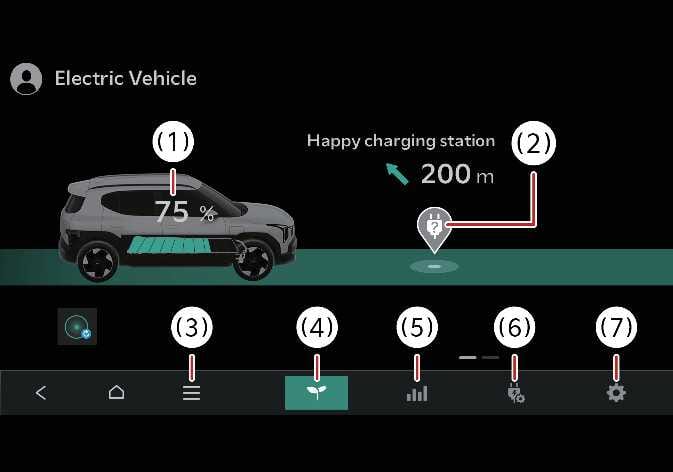 EV-Modusanzeige N_QVe27_C00_111_E Energieinformationen Aufladestationen in der Nähe Anderes Menü EV-Menü Einsparung beim Energieverbrauch Reservierte Aufladung EV-Einstellungen