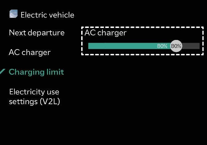 Sie können den Soll-Ladezustand einstellen, wenn Sie mit einem Wechselstrom- oder Gleichstromladegerät laden.