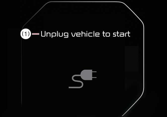 Diese Meldung wird angezeigt, wenn Sie das Fahrzeug starten, ohne das Ladekabel abzuziehen. In diesem Fall können Sie den Schalthebel nicht aus der Stellung P (Parkstellung) schalten. Ziehen Sie das Ladekabel ab und schalten Sie dann das Fahrzeug ein.