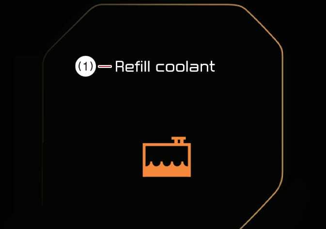 Diese Meldung wird angezeigt, wenn der Kühlmittelstand niedrig ist. Wenn die Warnmeldung angezeigt wird, beenden Sie die Fahrt und überprüfen Sie die Kühlmittelmenge. Eine längere Fahrt mit unzureichendem Kühlmittelstand kann zu ernsthaften Problemen mit der elektrischen Anlage des Fahrzeugs führen und ein normales Fahren unmöglich machen.