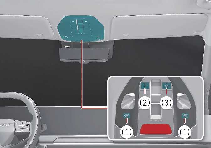 : Die Leuchten der Vorder- und Rücksitze leuchten auf, und durch erneutes Drücken erlöschen alle Leuchten.Wenn Sie die entsprechende Taste bei eingeschalteter Kontrollleuchte etwa 1,5 Sekunden oder länger drücken, ändert sich gleichzeitig die Helligkeit der Vordersitz- und Rücksitzleuchten. Wenn Sie die Taste bei der gewünschten Helligkeit loslassen, wird die eingestellte Helligkeit gespeichert.