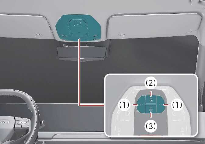: Wenn Sie die Taste an der jeweiligen Stelle drücken, schaltet sich die Leseleuchte der entsprechenden Stelle ein, und wenn Sie sie erneut drücken, schaltet sich die Leuchte aus.Wenn Sie die entsprechende Taste bei eingeschalteter Leuchte etwa 1,5 Sekunden oder länger gedrückt halten, ändert sich die Helligkeit der linken und rechten Leseleuchte. Wenn Sie die Taste bei der gewünschten Helligkeit loslassen, wird die eingestellte Helligkeit gespeichert.