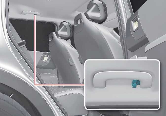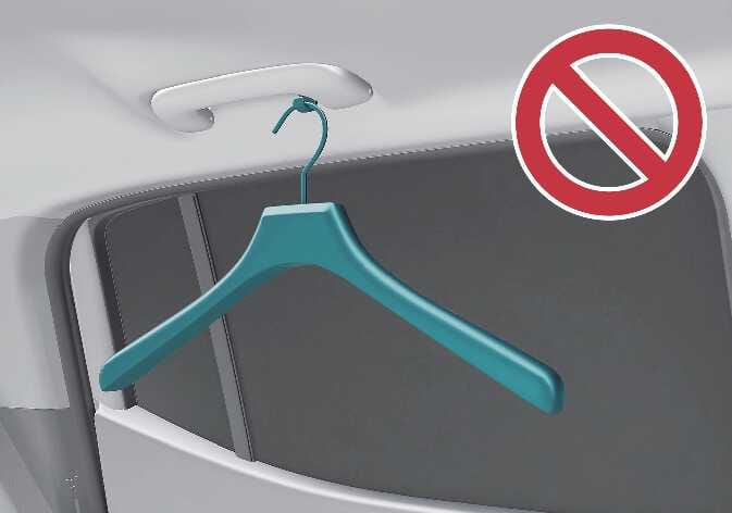 Neben dem linken hinteren Haltegriff befindet sich ein Kleiderhaken.