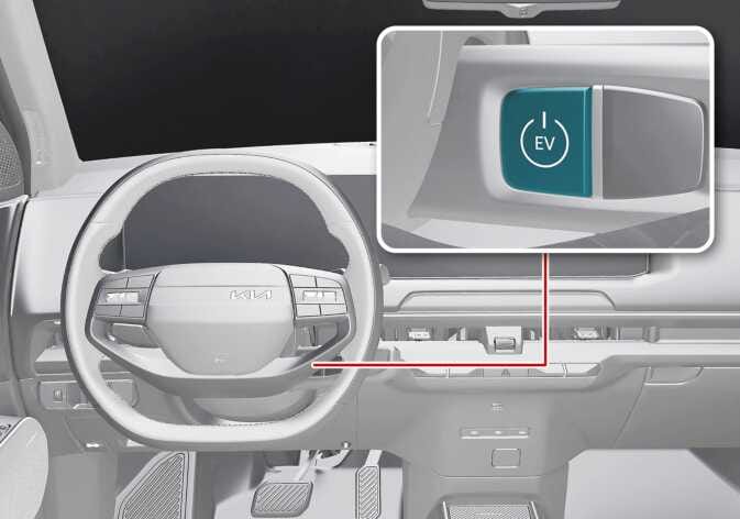 Drücken Sie bei ausgeschaltetem Fahrzeug oder im Zustand POWER ON die EV-Taste und betätigen Sie das Bremspedal, während sich das Fahrzeug in der P (Parkstellung) befindet.