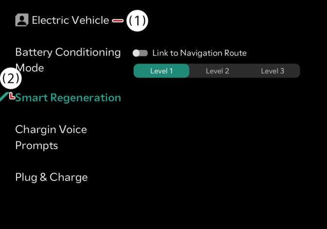 Die Abstandsstufe für das intelligente regenerative Bremsen erlaubt es, den Abstand zum vorausfahrenden Fahrzeug entsprechend der Abstandsstufe des Fahrers (Stufe 1/Stufe 2/Stufe 3) einzustellen.