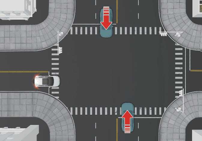 Die Funktion zur Kreuzungs-Kollisionsvermeidung kann eine Notbremsung durchführen, um beim Überqueren einer Kreuzung eine Kollision mit entgegenkommenden Fahrzeugen auf der linken oder rechten Seite abzuschwächen oder zu vermeiden.