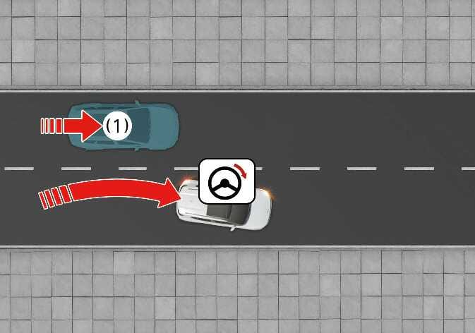 Beim Spurwechsel kann der Spurwechsel bei Gegenverkehr die Lenkung unterstützen, um eine Kollision mit einem entgegenkommenden Fahrzeug oder Motorrad abzuschwächen oder zu vermeiden.