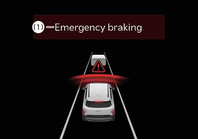 Die Notbremsung warnt Sie mit einer Warnleuchte für Sicherheit vorne (