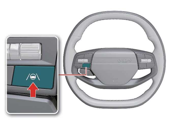 Um den Spurfolgeassistenten einzuschalten, drücken Sie kurz die Spurfolgeassistent-Taste am Lenkrad, während das Fahrzeug eingeschaltet ist. Die graue oder grüne (