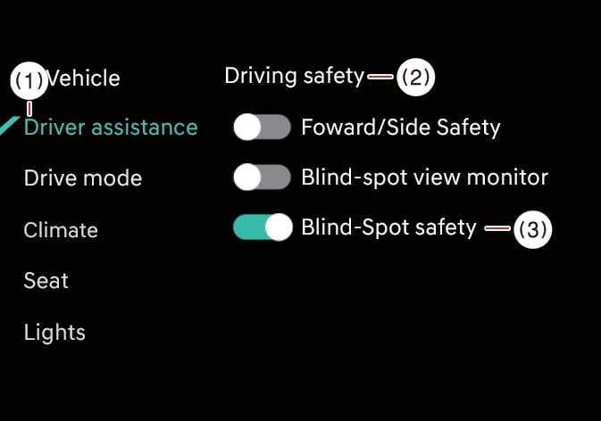 Wenn Sie das Fahrzeug neu starten, behält der Totwinkel-Kollisionsvermeidungsassistent seine letzte Einstellung bei.