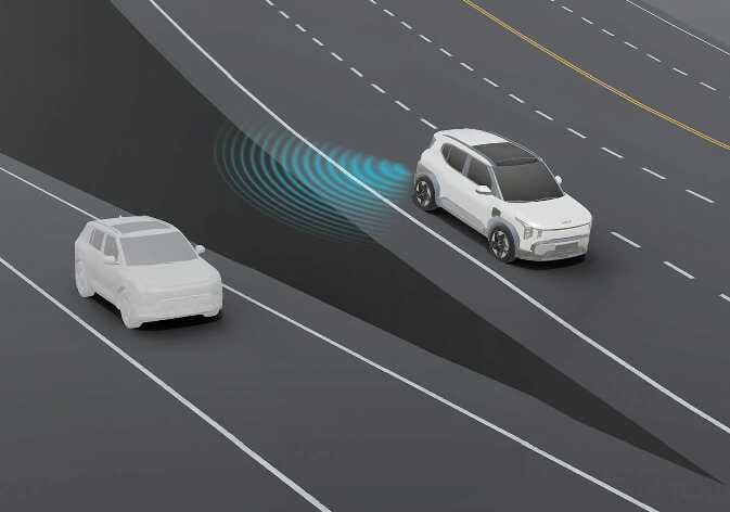 Der Totwinkel-Kollisionsvermeidungsassistent funktioniert nicht ordnungsgemäß, wenn Sie auf einer kurvigen Straße fahren. Achten Sie während der Fahrt immer auf die Straßen- und Fahrbedingungen.