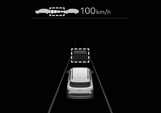 Wenn die Funktion Je nach Fahrstil aktiviert ist, zeigt das Kombiinstrument den eingestellten Abstand zum vorausfahrenden Fahrzeug und den Zielabstand zum vorausfahrenden Fahrzeug in weiß an. Es zeigt auch die Abstandstufe und den Zielabstand je nach Ihrem Fahrstil an.