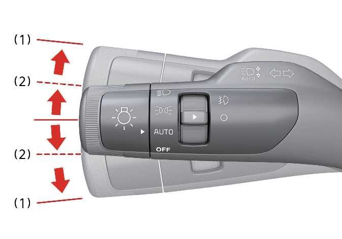 Wenn Sie den Blinkerhebel eine bestimmte Zeit lang in Stellung (2) bringen, erscheint der grüne Pfeil. Die Autobahn-Fahrspurwechselhilfe ist weiterhin aktiv, wenn Sie den Blinkerhebel in seine Neutralstellung zurücksetzen.