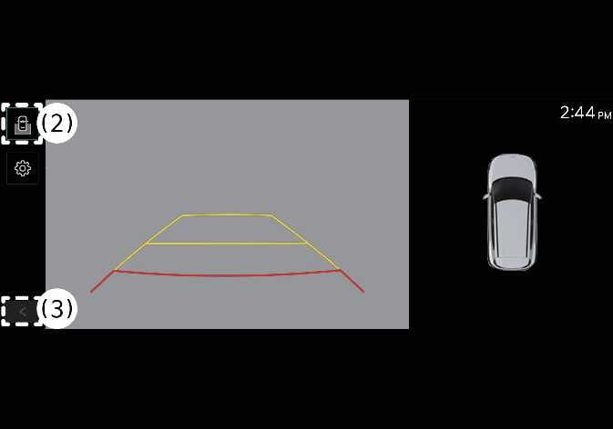 Sie drücken die Zurück-Taste (3) auf dem Bildschirm des Heckmonitors.