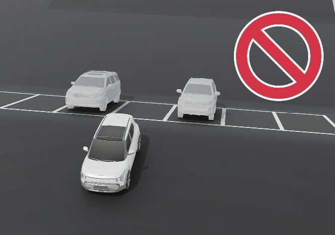 Wenn die ferngesteuerte intelligente Einparkhilfe verwendet wird, kann Ihr Fahrzeug beim Einparken in eine Parklücke mit einem Nachbarfahrzeug nur auf einer Seite die Parklinie überqueren, um dem geparkten Fahrzeug auszuweichen. |