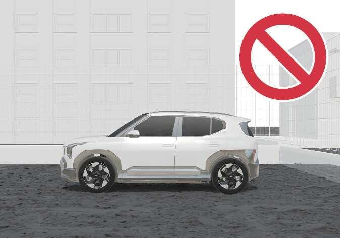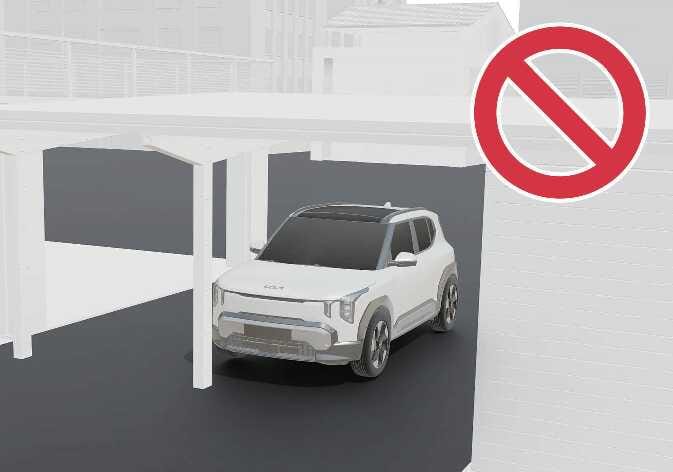 Verwenden Sie die ferngesteuerte intelligente Einparkhilfe nicht in der Nähe von Fahrzeugen mit größerer Bodenfreiheit, wie Bussen, Lastwagen usw. Dadurch kann es zu einem Unfall kommen. |