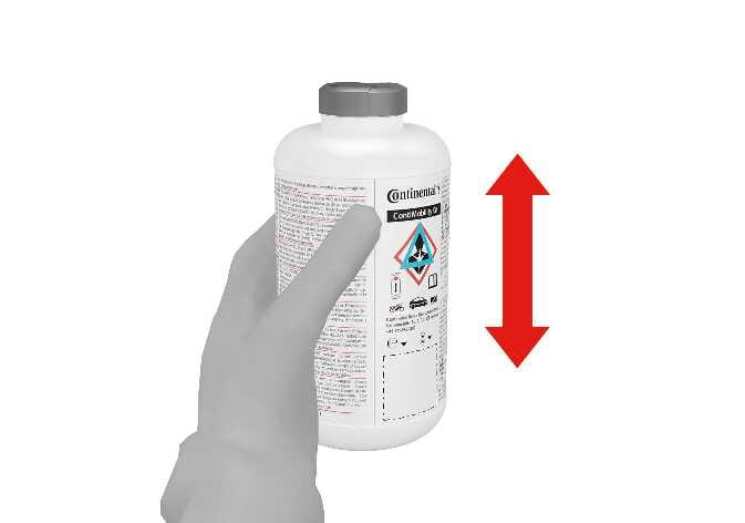 Schütteln Sie die Flasche mit dem Dichtmittel.
