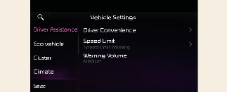 Do not operate the Vehicle Settings whilst driving. This may cause distraction resulting in an accident.