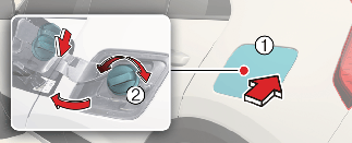 Pull open the fuel filler door (1).