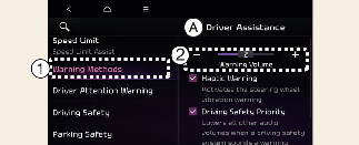 Ensure that Warning methods you have set may apply to the Warning methods of other driver assistance systems.