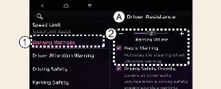 If you change the Warning volume, the Warning volume of other Driver Assistance systems may change.