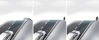 The illustration above shows the image the front view camera and front radar are capable of detecting as a vehicle, pedestrian and cyclist.