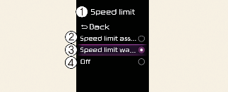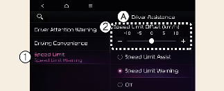Speed limit and Speed warning function operates based on an offset value added with the speed limit. Set the offset value to '0' to change or warn the speed according to the recognised speed limit.