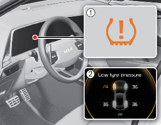 Low tyre pressure position telltale (Shown on the LCD display)