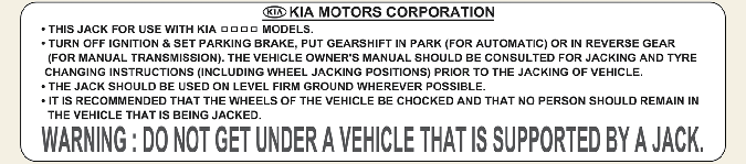 * The actual Jack label in the vehicle may differ from the illustration. For more detailed specifications, refer to the label attached to the jack.