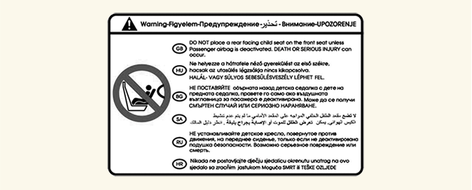 Etiquetas de advertencia de los airbags