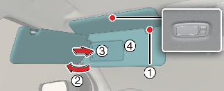 Para utilizar el espejo de cortesía, baje el parasol y deslice la cubierta del espejo (3).
