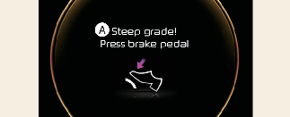 A: ¡Pendiente pronunciada! Press brake pedal (Presione freno)