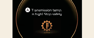 A: Transmission temp. is high! Stop safely (¡Alta temperatura de transmisión! Deténgase cuando sea seguro)