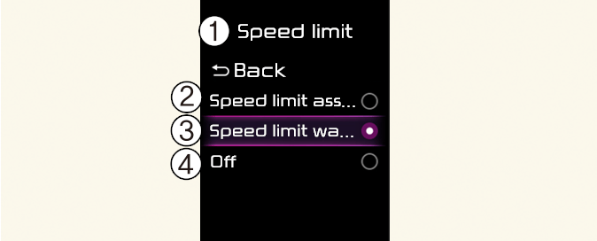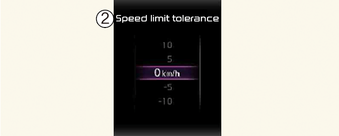 La función de asistencia de límite de velocidad se acciona según la configuración de compensación añadida al límite de velocidad. Ajuste el valor de compensación a '0' para cambiar o avisar sobre la velocidad de acuerdo con el límite de velocidad reconocido.