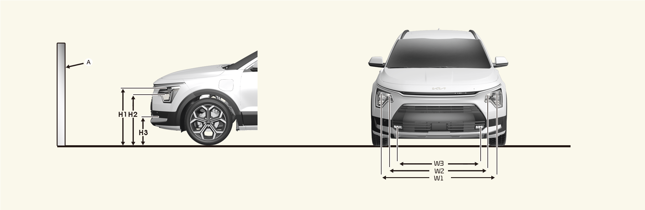 Con los faros y la batería en estado normal, oriente los faros de modo que la parte más intensa se dirija a las líneas verticales y horizontal.