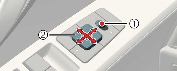 실외 미러 조절 OSG2H041056 작동 방법 미러 조절 선택 스위치(1)를 L(운전석) 또는 R(동승석)으로 선택하십시오. 미러 조절 스위치(2)를 눌러 실외 미러를 조절하십시오.