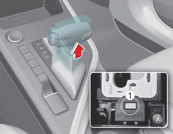 배터리가 방전되었거나 또는 시동 「ON」 상태가 아니면 브레이크 페달을 밟아도 변속 레버가 「P」(주차) 위치에서 「R」(후진) 위치로 조작되지 않습니다. 이 때는 반드시 평지에서 다음 사항을 따르십시오.