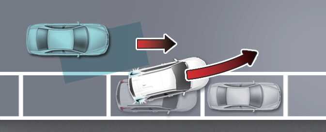전진 출차 시 후측방에서 다가오는 차량과의 충돌 위험이 판단되면 충돌하지 않도록 제동을 도와줍니다.