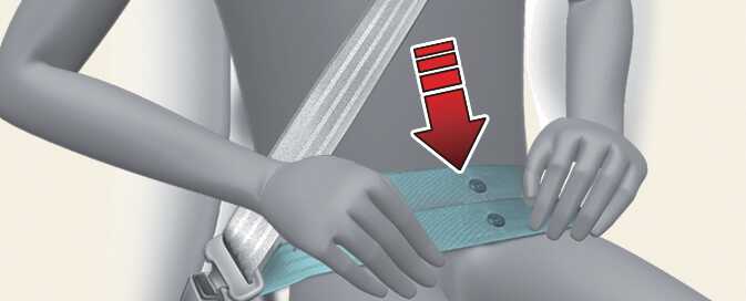 안전벨트의 골반띠 부분이 부드럽게 골반 부분을 지나게 해야 합니다.