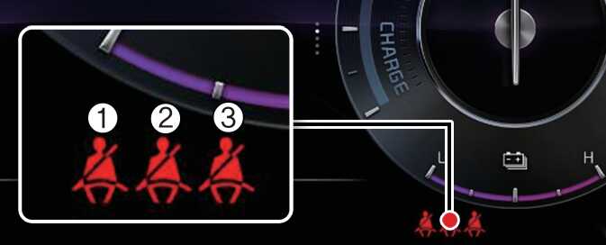 뒷좌석 안전벨트를 착용하지 않으면 약 70초 동안 경고등이 켜집니다.