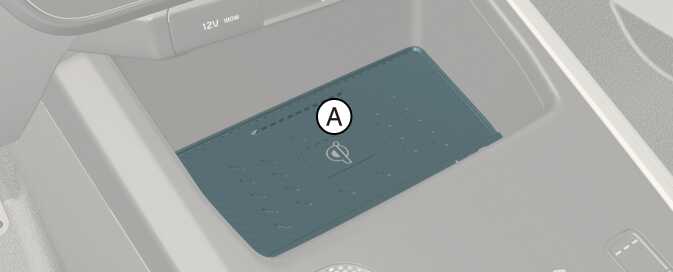 Kia Connect 앱에서 ‘차량 디지털키 설정 → 등록하기’를 누른 후, 스마트폰을 실내 인증 패드(무선 충전 패드) (A)에 스마트폰의 뒷면이 아래로 가도록 올려 놓으십시오.