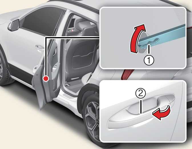 뒷좌석 도어를 열 때는 차량 밖에서 바깥 손잡이(2)를 당겨 여십시오.