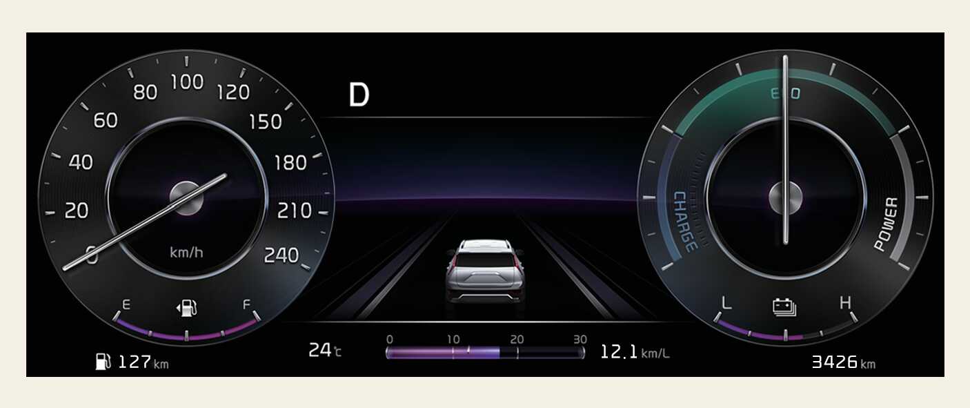 ECO/파워 게이지는 주행할 때 효율적인 연비로 운전할 수 있는 영역을 클러스터에 표시하여 운전자에게 알려 연비 향상에 도움을 줍니다.