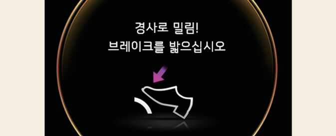이 경우 LCD 경고창에 경고 메시지가 나타나며, 지시에 따라 브레이크 페달을 밟으십시오.