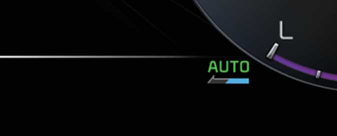 전방 레이더가 전방 차량을 인식하는 상황에서는 'AUTO' 문구가 초록색으로 표시됩니다. 전방 차량의 주행 상황에 따라 자동으로 회생 제동 단계를 제어하며, 자동으로 변경된 회생 제동 단계가 화살표로 표시됩니다.