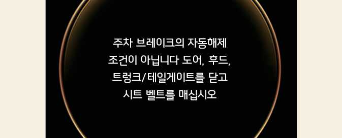 다음 조건을 모두 만족하는 경우 가속 페달을 천천히 밟으면 전자식 파킹 브레이크(EPB)가 자동 해제됩니다. 클러스터의 브레이크 경고등이 꺼졌는지 확인하고 출발하십시오.