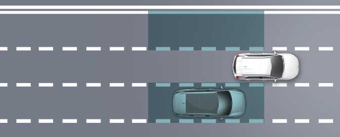 경고 영역은 자차의 속도에 따라 변경됩니다. 단, 사각 지대에 차량이 있더라도 자차가 빠른 속도로 추월할 경우 경고를 하지 않습니다.